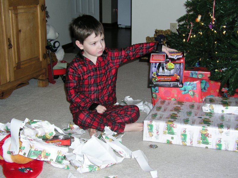 Tyler is apparently disappointed with getting another Power Ranger. |