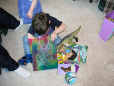 Dwayne, Donovan and Erica looking in Donovan's Easter bag. |