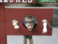 Thomas and Sam playing in front of Jeff & Becky's trailer.