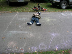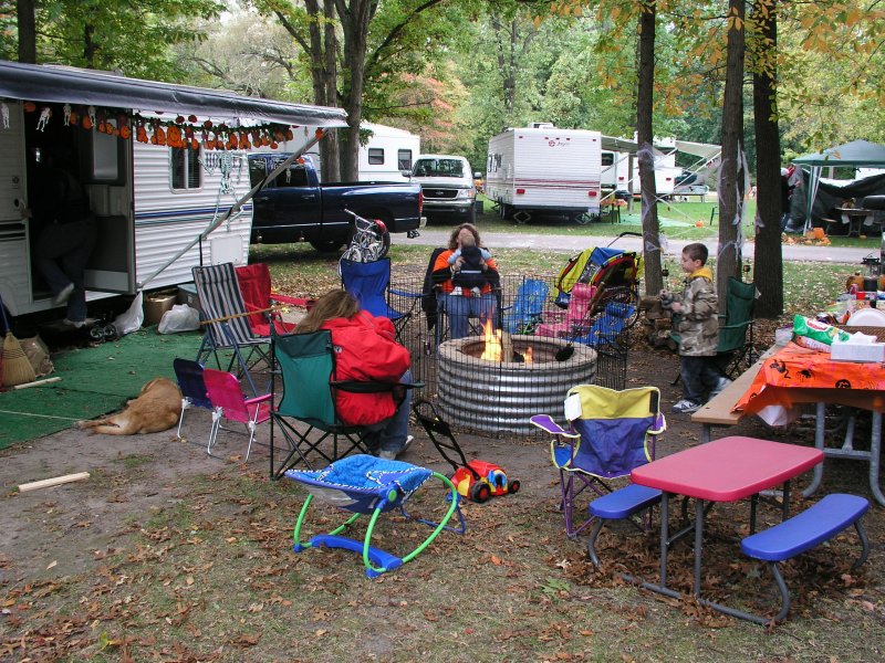 Tara standing in front of Jeff & Becky's camper. Tahoe made it