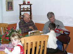 Sam, Lee, Tyler, & Gary playing with the kids gifts. |