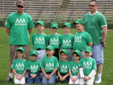 The season has officially started, as both of the kids have played games now. Since they occur during the week, I am at work while the kids play. Tara will do her best to take pictures, but with three other kids to worry about as well this may not happen all of the time. In fact, the camera was forgotten for Sam's first game - so no pictures of that. Tyler had his first game in a coach pitch league on Tuesday, May 8th. He struck out twice, but got a hit in his last at-bat and also scored one run (by sliding into home to avoid a tag). His team won the game 13-6. He played two innings as catcher, two as shortstop, and two in left field. Just for a reminder, Tyler's team wears the green uniforms, and his number is 2. Well, the process of getting pictures taken has proven difficult, as Tara has been "volunteered" into helping the coaches out at the games (especially Tyler's, where she apparently has become the official score keeper). She did manage to get some pictures of Samantha's game on the 14th. Just as a reminder, Sam's team wears green uniforms, and her number is 3 (although you can't see it in any of these pictures anyway). | ||||||