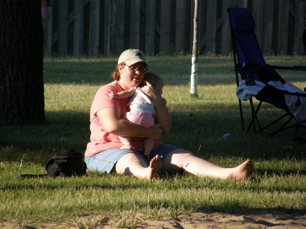 Tara holding Jay at the park. |
