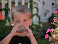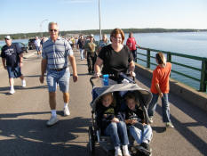 Tyler walking in front of Tara, Gary, and the kids in the stroller. |