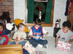 Terry watching Sam, Marissa, and Drew with their gifts. |