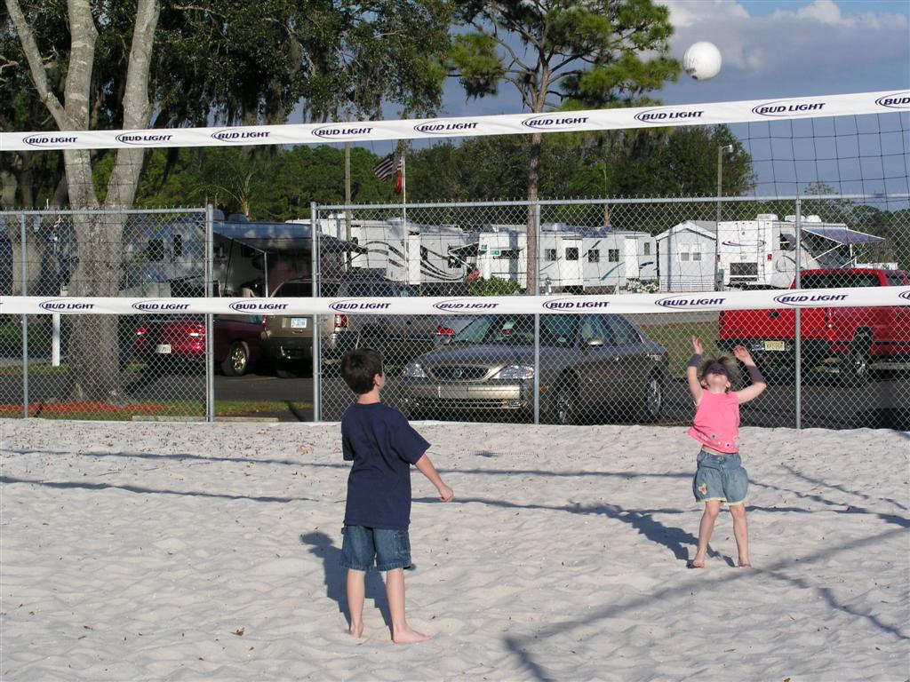 Tyler and Samantha playing beach volleyball. |