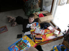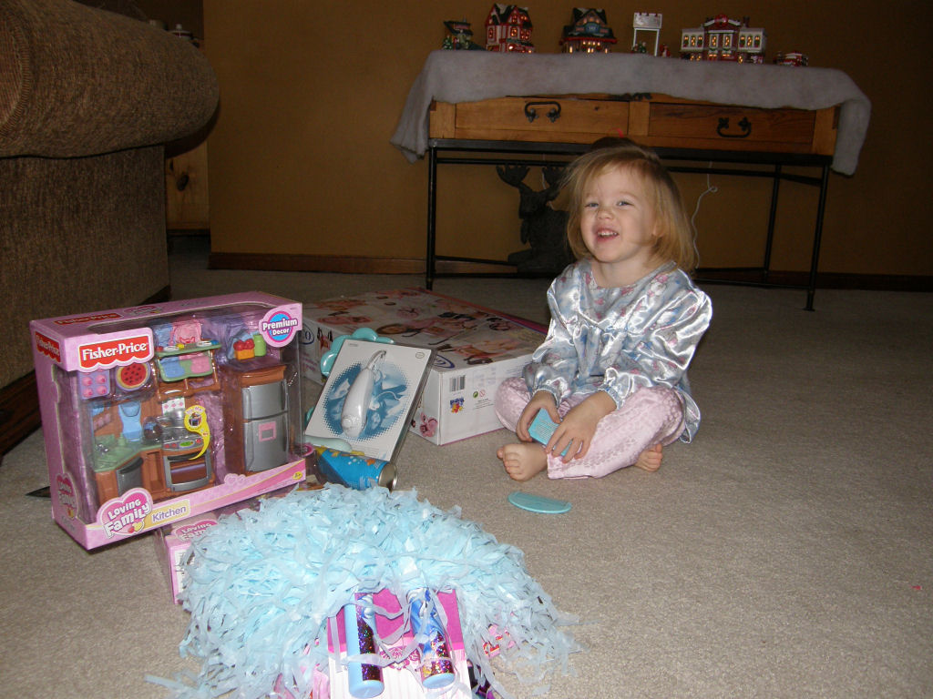 Despite the fact that the camera was out and ready to go from last night, I really screwed up today and didn't think of picking it up until everything was opened up. I had the kids gather up all of their presents to take at least one picture of them with their new stuff. I know that this doesn't really affect most of you, but I am really beating myself up over missing these pictures. |