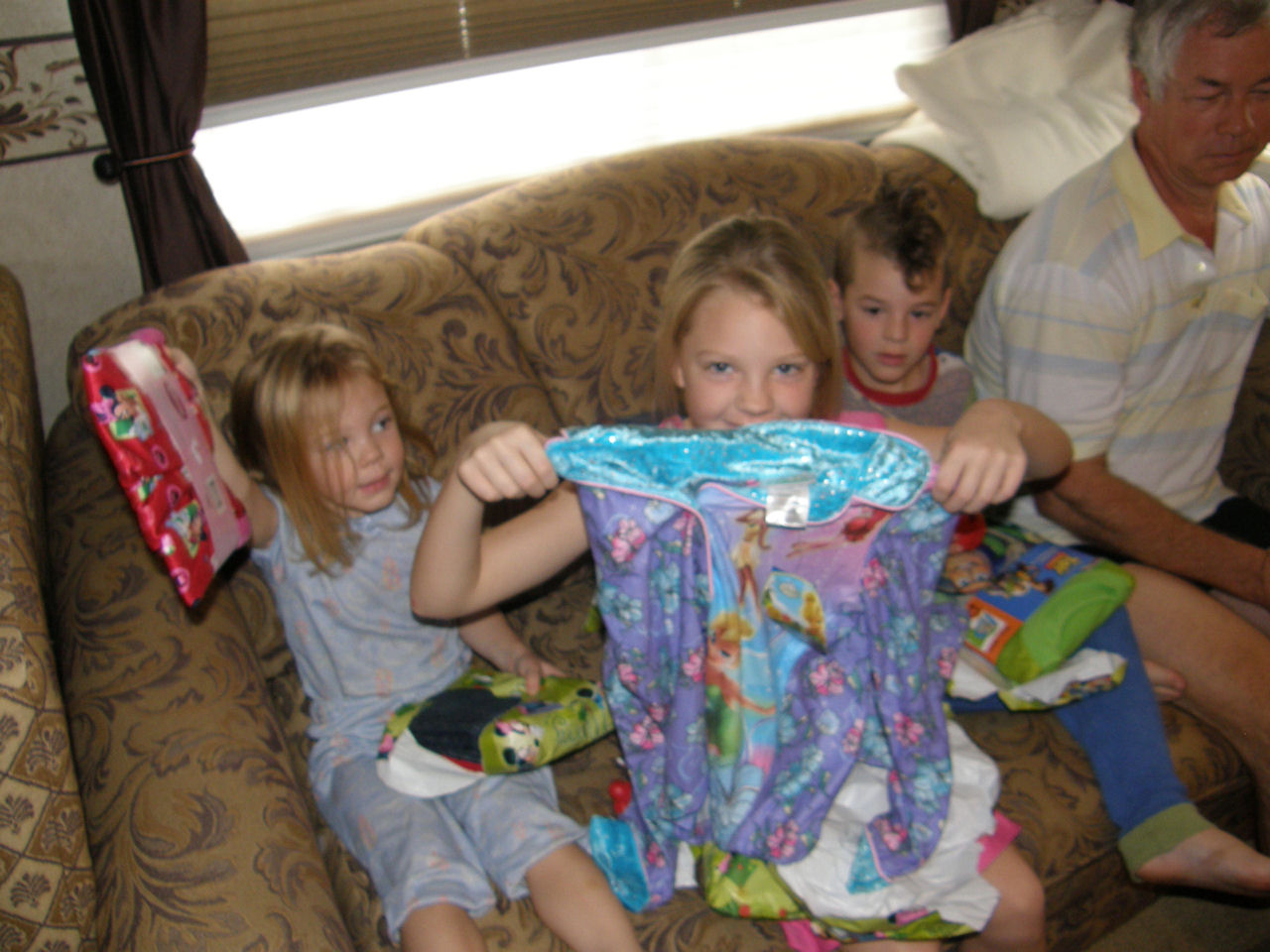 Sammie got a pair of Tinkerbell pajamas from Grandpa and