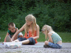 Thomas, Andrew, Samantha, and Jayden playing on the road with