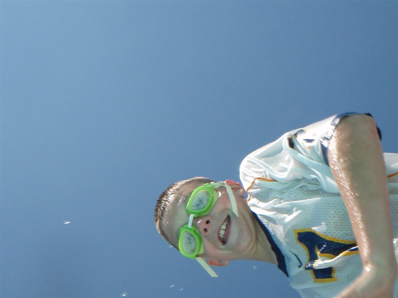 Drew jumping into the pool.
