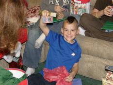Sam opening up a new MP3 player from Grandpa Jerry & Grandma