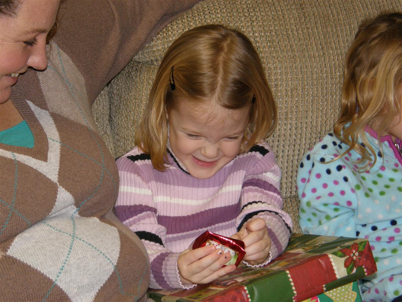 Sam watching as Lilly opens a coloring book (and Borders gift