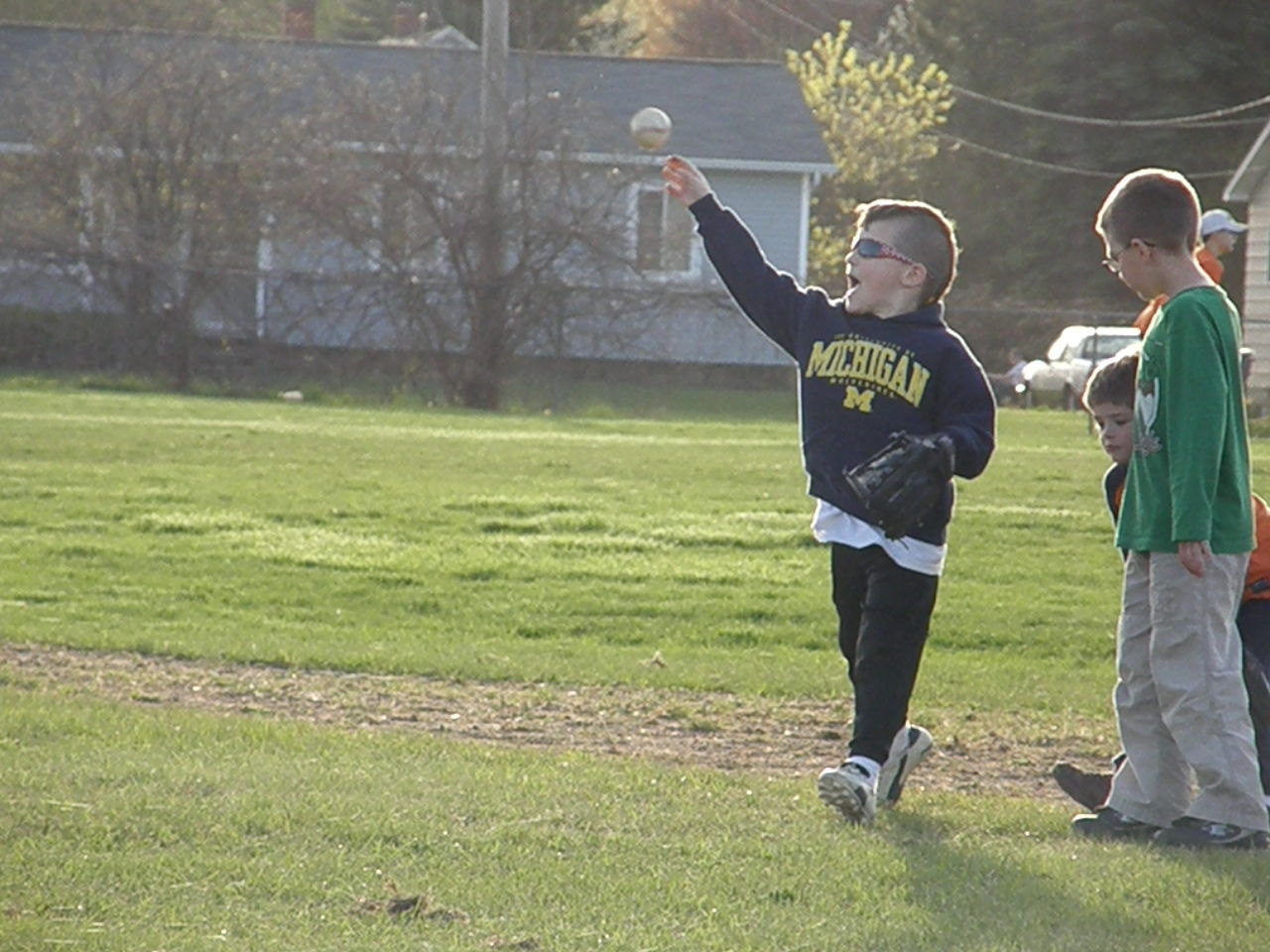 Drew attempting to catch a pop fly.