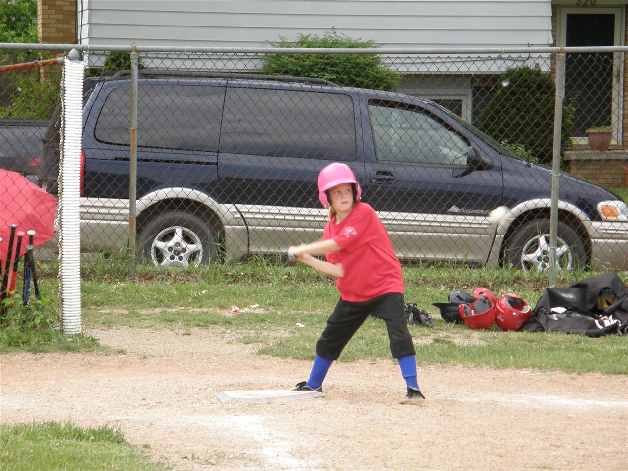 Sam at bat. She started out strong today, collecting some big