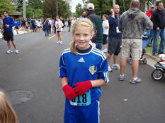 As part of a fundraiser, Samantha's entire soccer league has the opportunity to run in the Applefest races (the distance depends on the age group, but the vast majority of teams run the 5K). This is Sam's first year participating in this event. While she didn't set any records with her time, she did a good job considering that this is the first time that she has ever ran a race beyond a quarter mile, such as those that she participates in at her schools field day! As you can see in the next image, Samantha ran her race in 40:32. This isn't too terrible for someone who has never ran a race anywhere close to this distance before! Great job, Sam! |