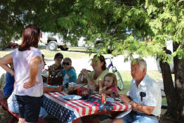 Terry, Tara, and Jayden making pie-iron pizzas for lunch.