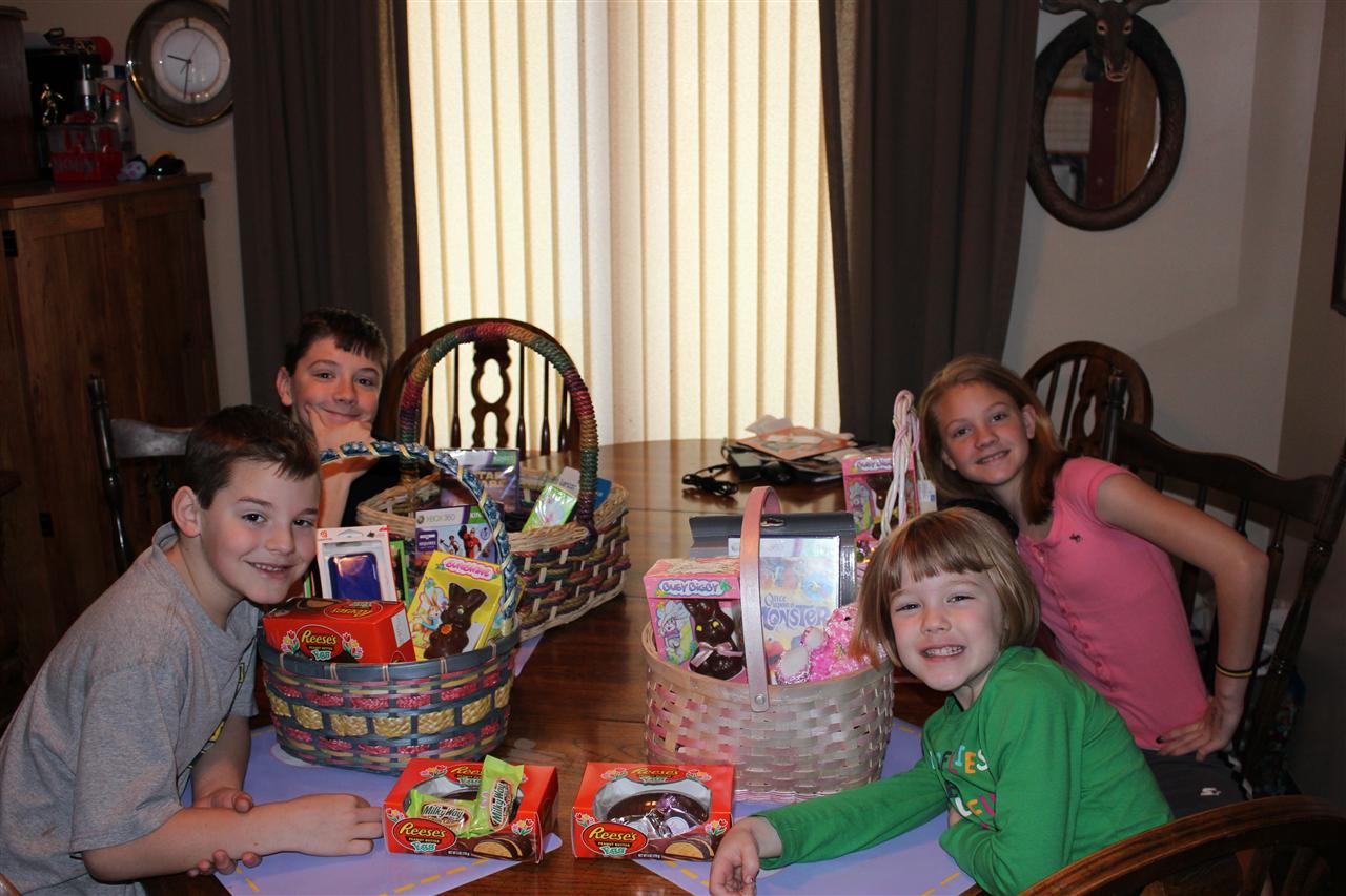 The kids enjoying the Easter goodies.