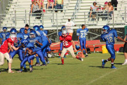 defensive end (look for the long red socks).