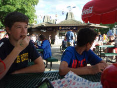 July 24th, 2013 Thanks to some lucky timing on my part I was able to secure 4 tickets to Cedar Point for free using my "Coke Rewards" points (well, two of the tickets required the use of points, the other two were completely free thanks to a limited time give-away that I managed to time just right). We decided that the perfect time to use the tickets would be during Carlos' visit. Before his visit we asked him if an amusement park would be something that he would be interested in, and he said that he like thrill rides. We took this as a green light to go. Tara & I took the day off on Wednesday, July 24th, in the hopes that the park would be less crowded (it likely was, although the lines were still long) and we took Tyler, Samantha, and Carlos with us. We arrived later than I had hoped, about 10:30am, and entered the park. It was cool and cloudy this morning, so we kept on our sweatshirts as we entered the park. We made our way up the midway, trying to decide which roller coaster would be our first ride of the day. I attempted to make Top Thrill Dragster the first ride because the line was relatively short, but Tyler wasn't interested in doing that first thing, so we moved on. The kids finally settled on the Magnum XL200, and we got in line. Everyone enjoyed the ride - except Carlos. He appeared to be very near puking more than once as the ups and downs became too much for him. He didn't allow this one ride to ruin his day, however, and he did attempt a couple of other roller coasters (the Gemini next, followed by the Iron Dragon and the Blue Streak). I don't think that any of these were really his cup of tea, however. Speaking of the Gemini... I had an interesting experience there myself. As we approached the big hill, I was in the blue car while Tara, Tyler, Sam, and Carlos were in the red car. I snapped a photo of the four of them and put my camera away safely in my pocket. As we began the climb up the hill, my car stopped while the red one continued upward. I didn't think too much of it until a worker appeared on the ramp to my right, saying "I gotta have it." I handed over my camera, and once he returned to his station we finished the ride. He returned my camera once we returned to the station. Only then did I hear the announcement - "as a reminder" - that there is no camera or cell phone use allowed on the rides. Sure... now you tell me! Oh well. Lesson learned. I didn't take any more pictures while on the ride today, so everything else was taken as we wandered the park or while we waited in line. We packed a lunch today, so we left the park briefly to eat at the car (there was no way we could afford to eat inside the park - not when a chicken strip basket costs $11.99, without a drink. I could get a whole meal combo for $5 at DQ!). It was warming up at this point, so we left our sweatshirts behind when we returned to the park. After lunch the boys headed out on their own while Tara, Sam, and I stuck together. We rode a few rides, waited in line for one that we had to get out of line due to a bathroom need (Sam!), and waited in line for one that we had to get out of line due to a ride malfunction. We met back up later on and got on a few more rides. Once darkness settled in we began to feel the effects of our long day. We made a stop in one of the stores to stock up on souvenirs (for us, for Carlos, and for his Dad) before making our way out of the park. I think that we all had a great time today, even though we didn't get to ride as many rides as I would have liked. We each managed to find something that we enjoyed to ride, and the price was certainly right (thanks Coke!). Although we won't have Carlos with us next year, I am sure that at least some of us will be back again!