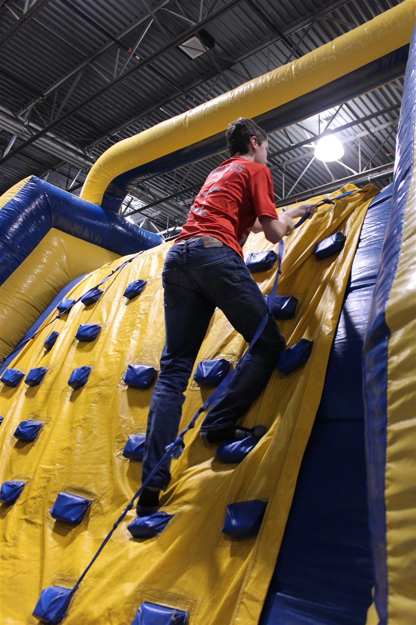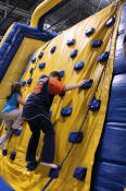 We caught a break once again and had a day with only one other activity already attached to it. Drew had hockey games this morning, but the playoff basketball game that I was expecting for Samantha was delayed a week until next weekend. That gave us the entire afternoon to spend at the fourth annual 97.1 The Ticket Sportsfest at the Suburban Collection Showplace in Novi. As has been the case for the past three events, the four professional sports teams were the focus of today's event. I'm sure that it helps that the games for all four of the teams just happen to be broadcast by 97.1... a fact that probably helps to convince each team to participate! The first exhibit that we saw this year upon our arrival belonged to the Detroit Pistons. They had a DJ, a basketball court, and a small store set up. We didn't really spend a lot of time here this year, as the music was blaring almost to the point where it was difficult to take. The kids didn't want to get in line to shoot a basket on the court, but they did take some shots on the rims set up nearby (like a pop-a-shot setup). Behind the Pistons area was that of the Detroit Tigers. They had a mock locker room setup, like in the past. They also had a father-son uniform combo this year, with both Cecil and Prince Fielder's jersey's on display. Some of the kids each took a turn throwing baseballs to see just how fast they could throw. I think each of them did well, but they were probably disappointed that none of them hit triple digits! We did get a chance to take a picture with Paws, the Tigers mascot while here. Behind the Tigers area was an inflatable obstacle course that each of the kids went over, some of them multiple times. There was also a face-painting area set up here, so Tara and stood in line here with the girls while I wandered around with the boys. We made a quick trip through the Detroit Lions exhibit, but the boys weren't too interested in doing anything here. I think that they have outgrown the football helmet bounce house here (and I am tired of signing a waiver for them to go inside it - the only bounce house waiver in the entire building!), and they have never taken an interest in the passing area that is set up. They also chose not to try the kicking area this year. Drew stood for a picture with Roary, the Lions mascot, but that was about it as far as Lions activities go. It was on to the final team, the Detroit Red Wings. This was the area that the kids enjoyed most (at least from what I saw). There wasn't too much new to see or do - the DJ was here again giving out random Red Wings paraphernalia, and all of the teams seem to be really interested in selling things now (I guess it had to get overly commercialized at some point). The Wings did have a new setup this year though, in that instead of a street hockey area they had an actual rink with real ice skates and everything. It wasn't ice, but was synthetic. Tyler did very well on it, but Drew was really frustrated by how hard it was to skate on. Once Tara and the girls were done, they gave it a shot as well and had a good time as well. With our last set of activities complete, we decided to call it a day. Another day of sporting fun under our belts, with everyone already looking forward to next year!