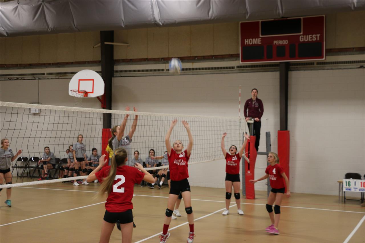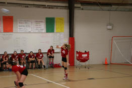 Samantha knocking the ball over the net.