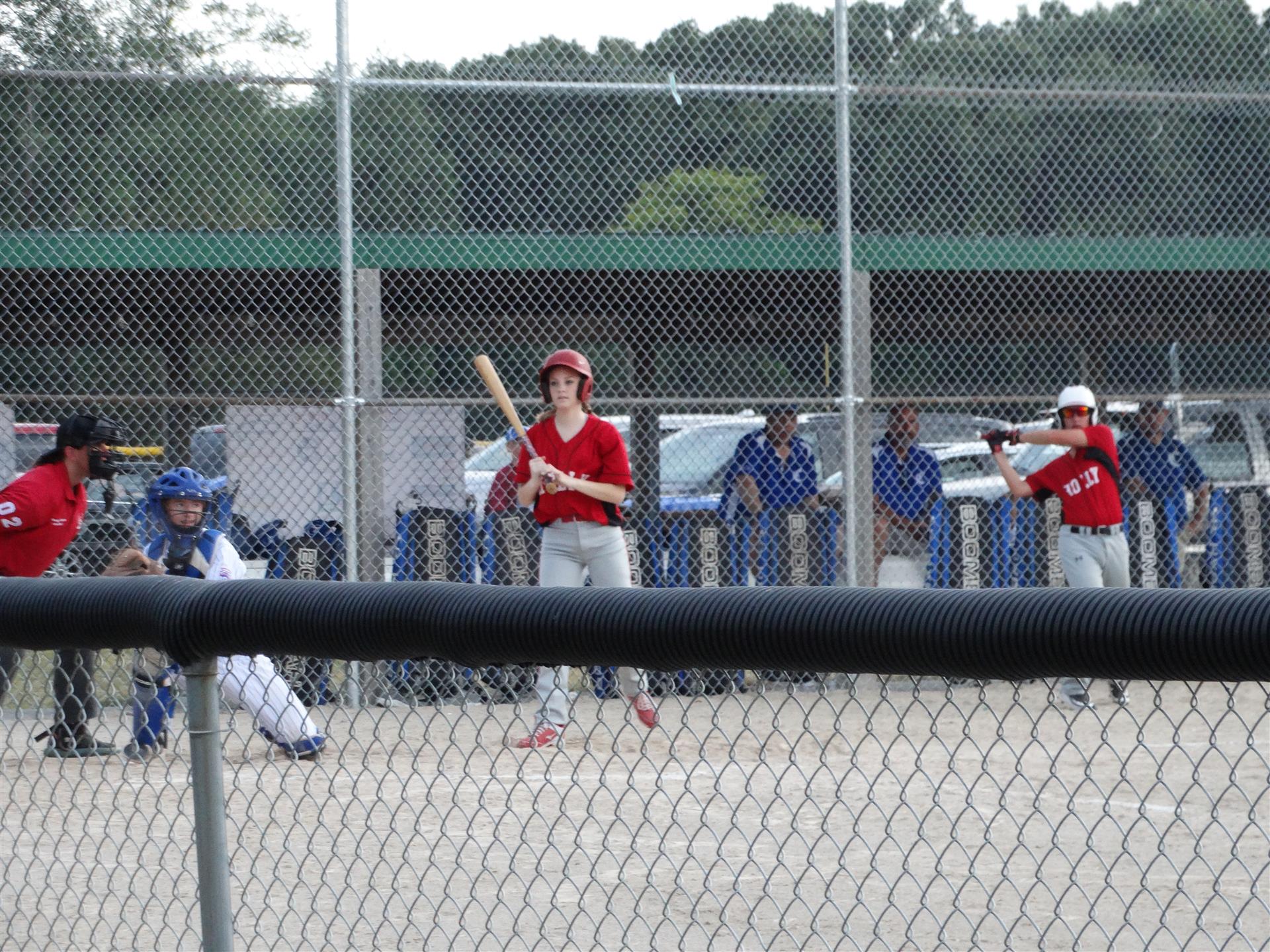 Sam looking for a pitch to hit in her only at-bat of the game,