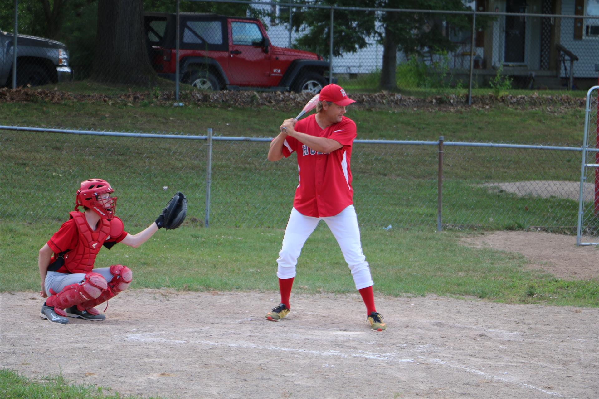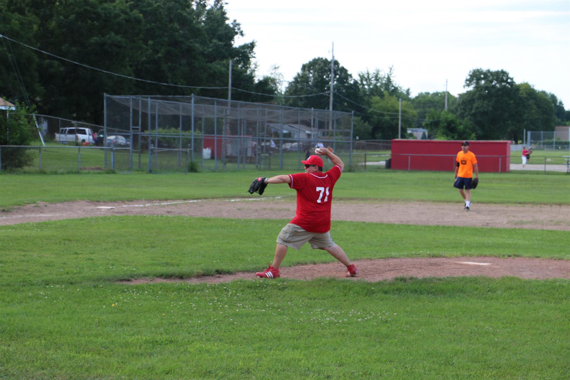 Dan K., Joe's dad, pitching for the parents and sibling team.