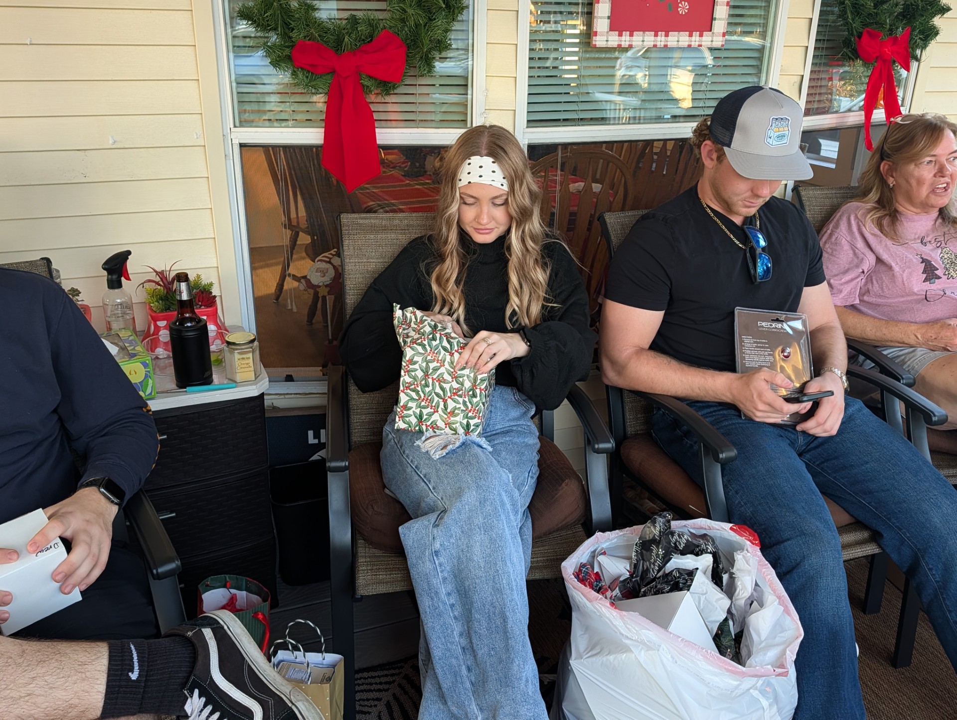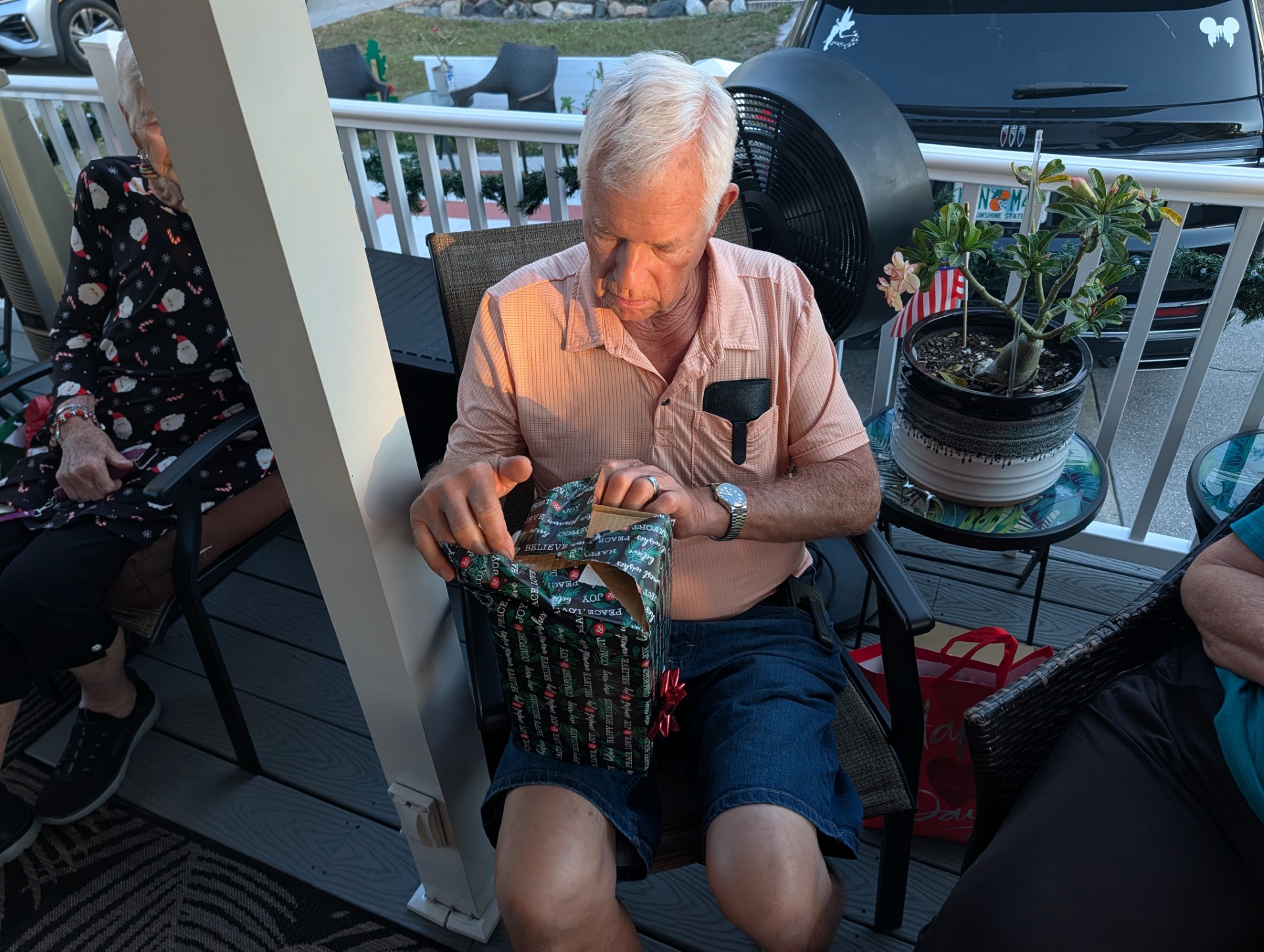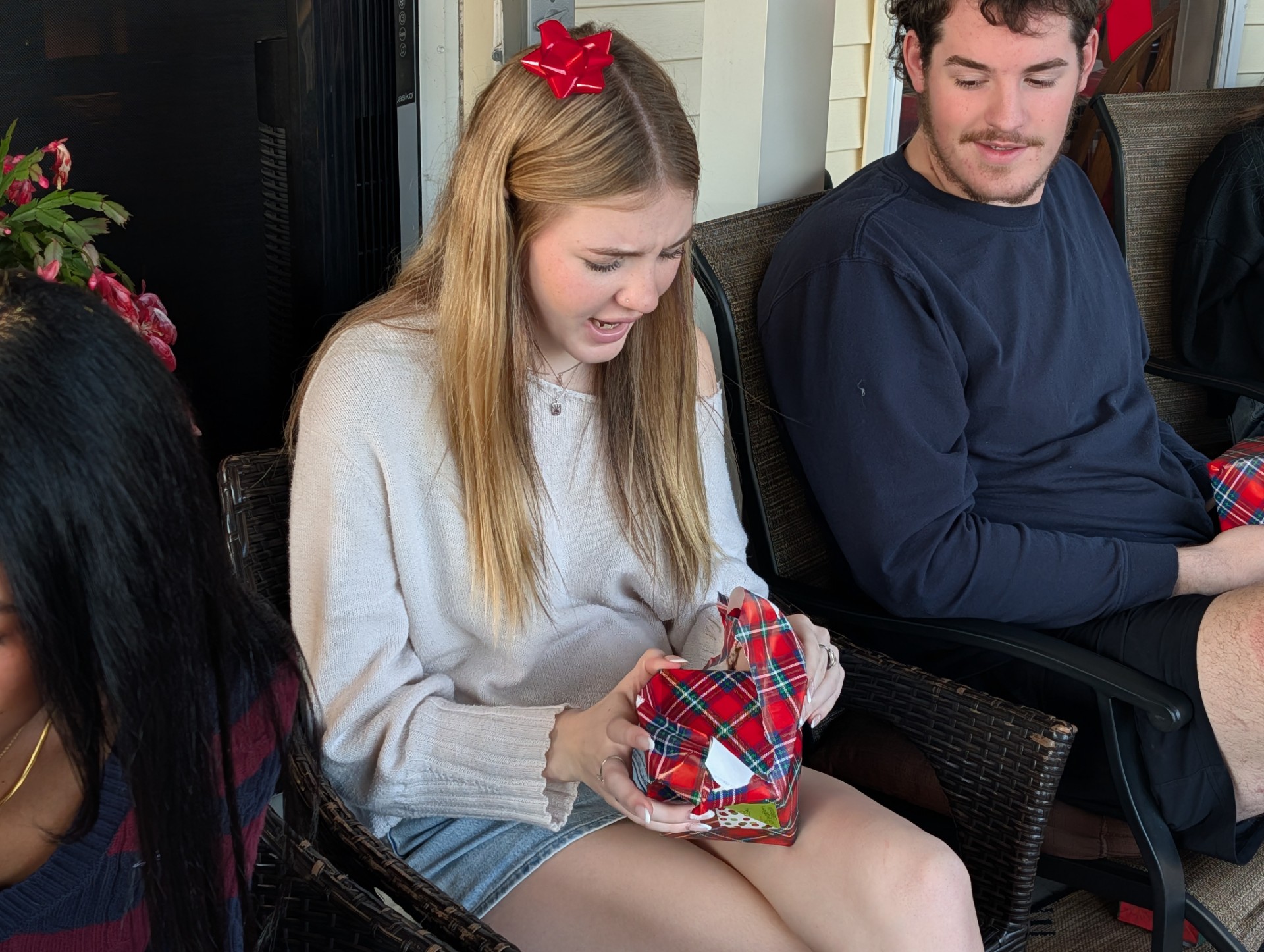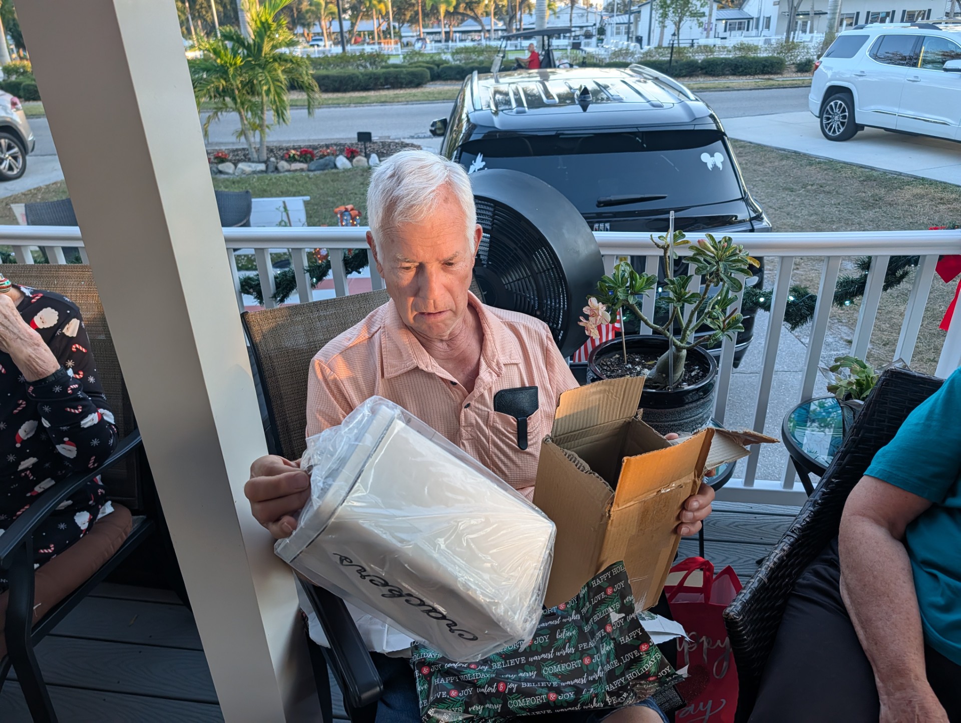 Aunt Erica opened the gift for her and Uncle Dwayne from Grandpa