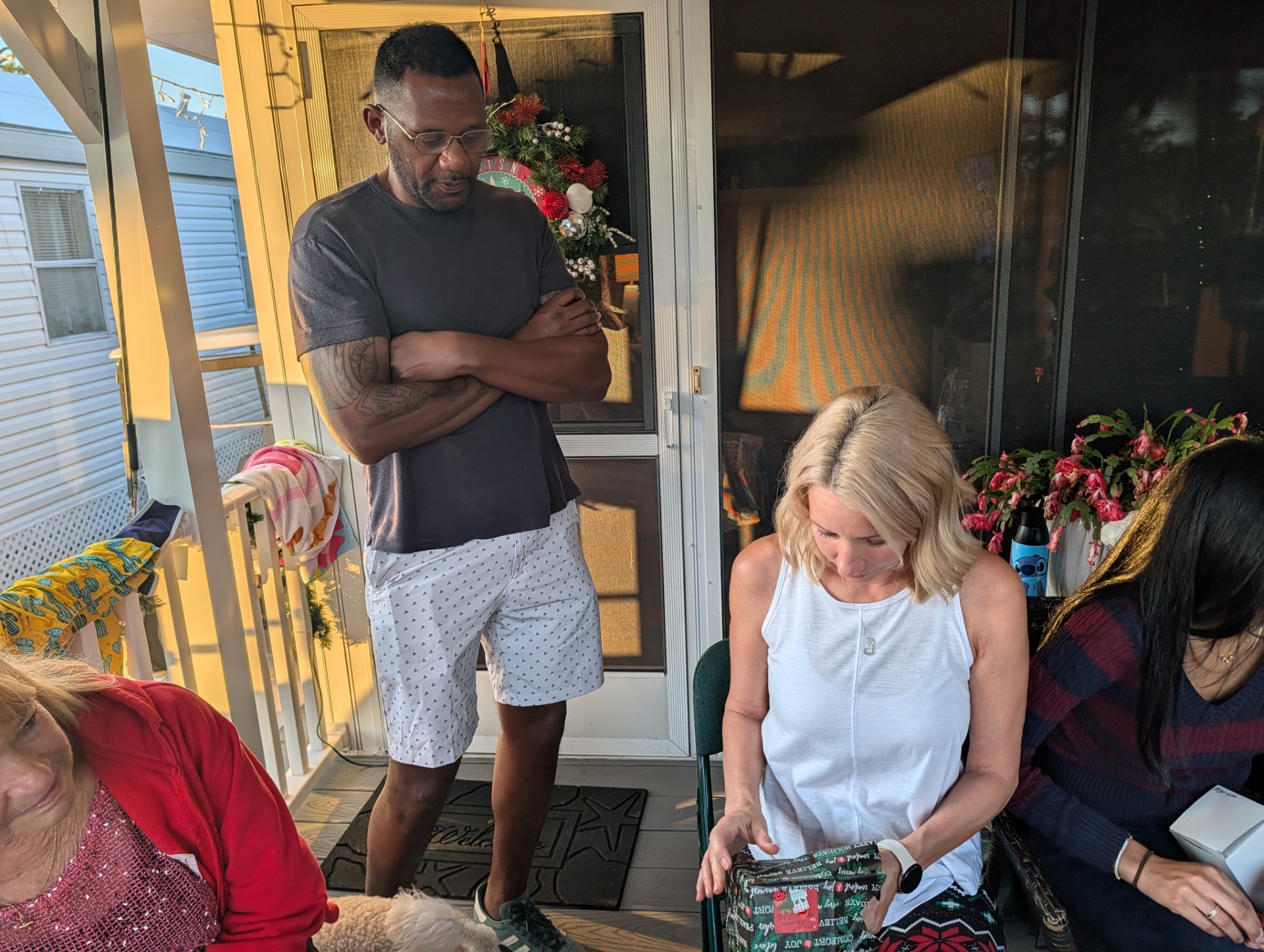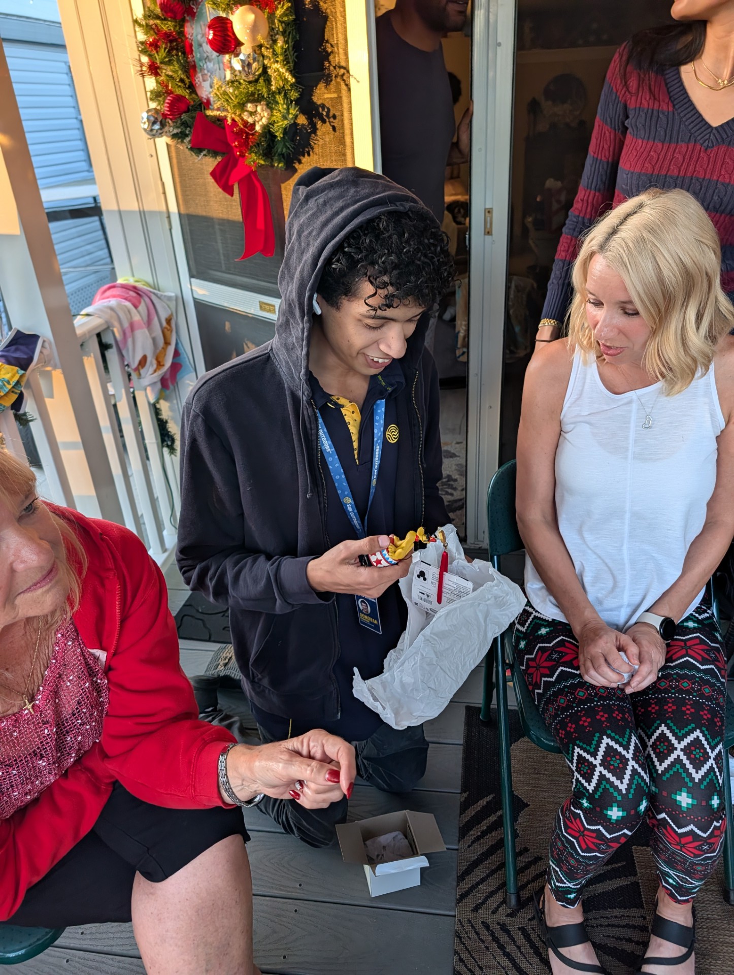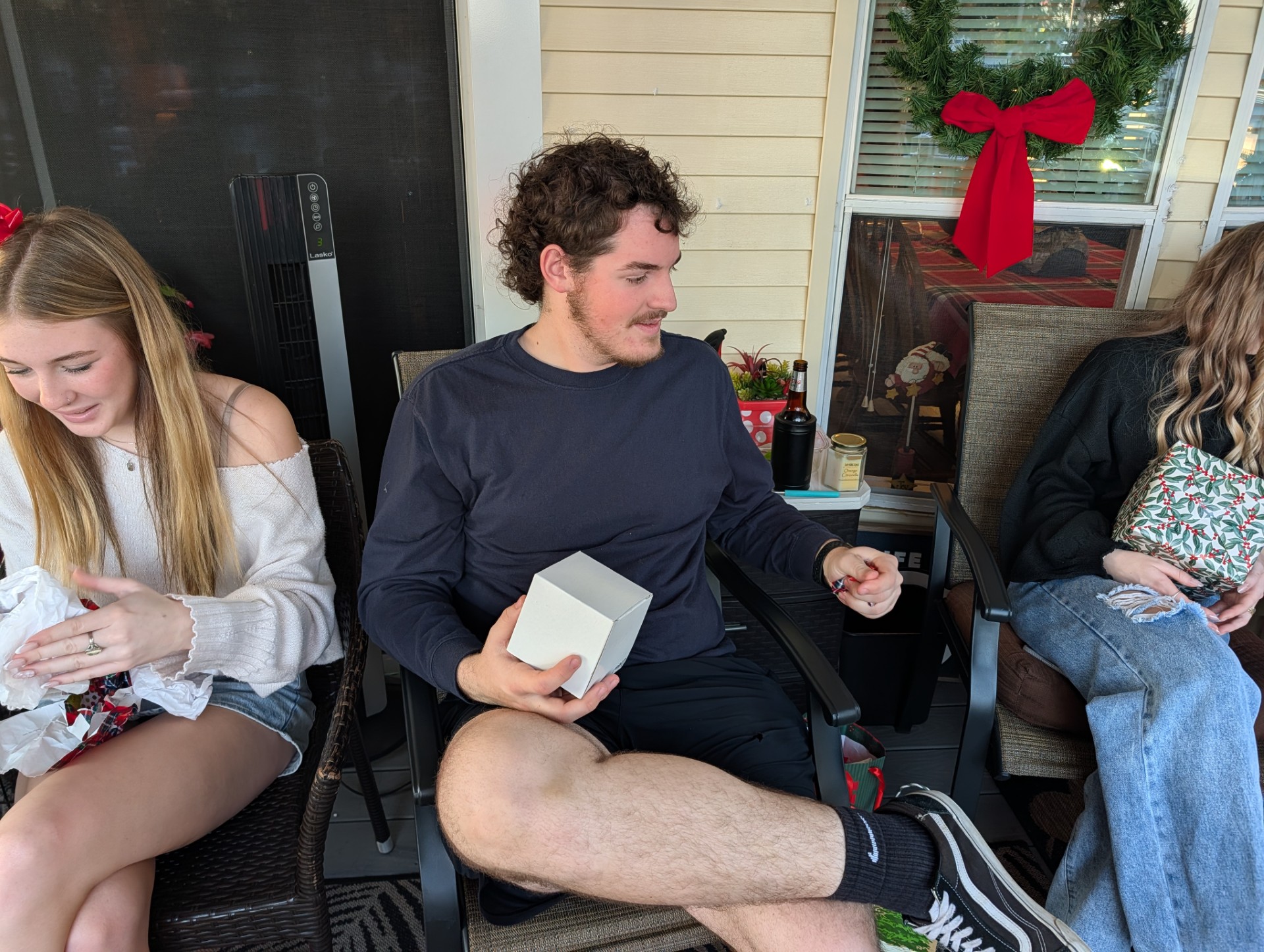 Aunt Erica opened the gift for her and Uncle Dwayne from Grandpa