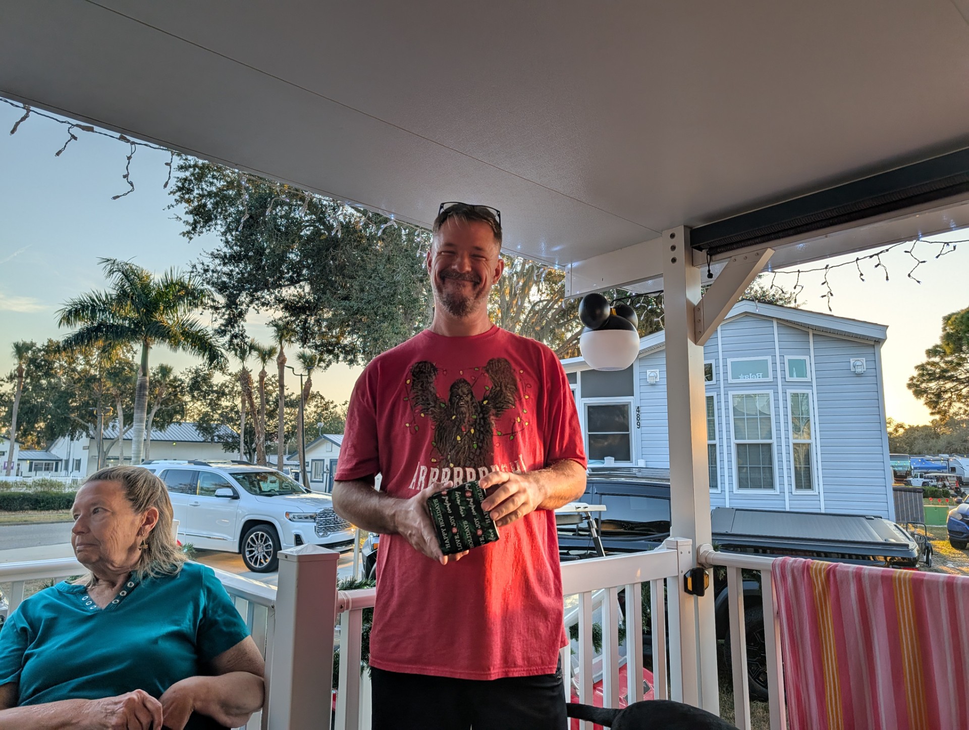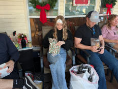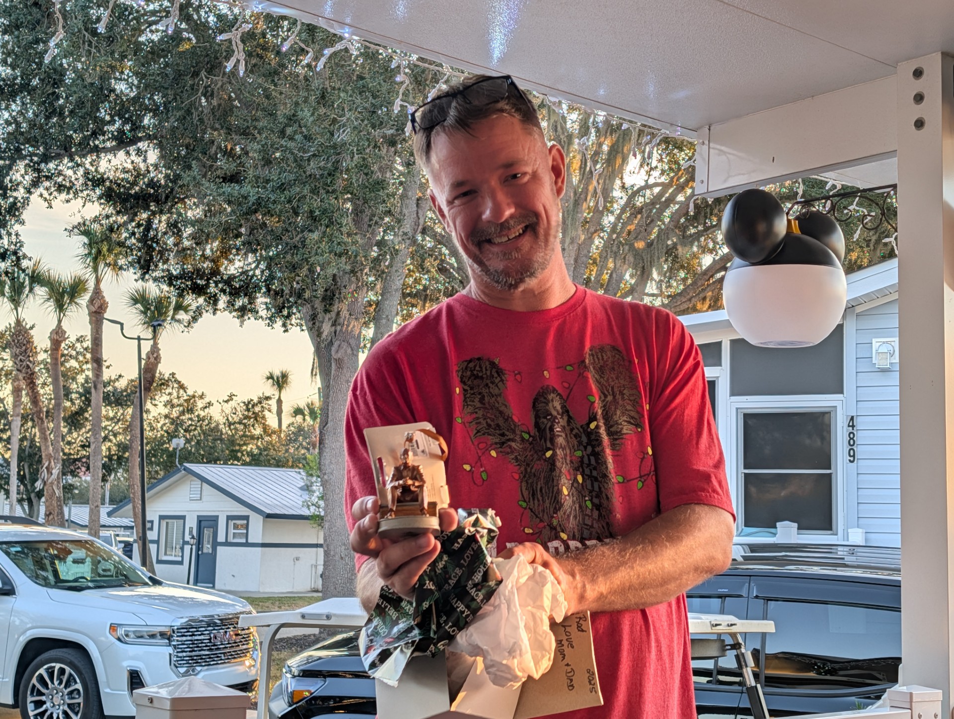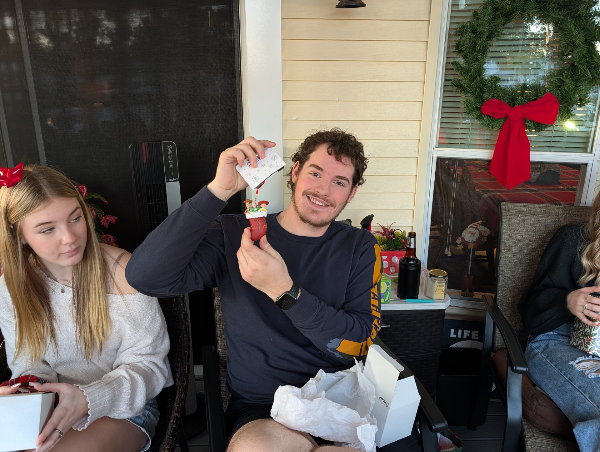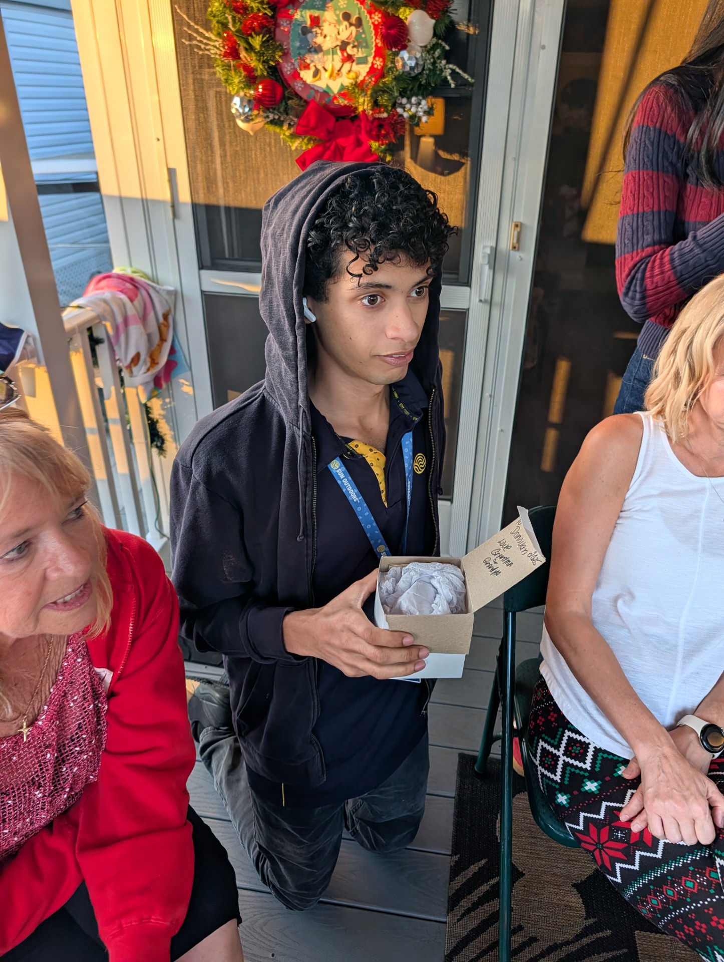 Aunt Erica opened the gift for her and Uncle Dwayne from Grandpa