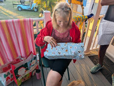 Jayden opening her gift from Grandpa Gary & Grandma Terry...