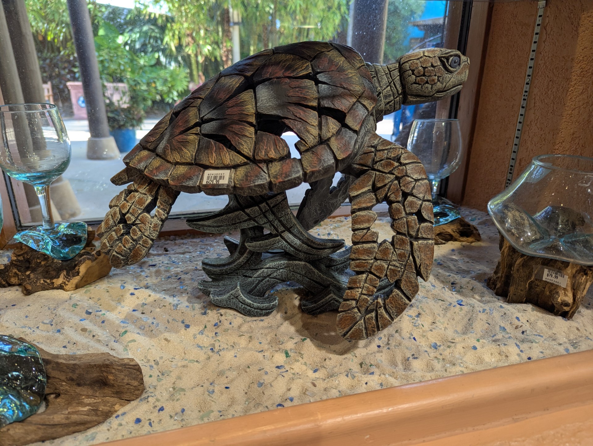 amazing sea turtle sculpture and some wood/glass combo pieces that I