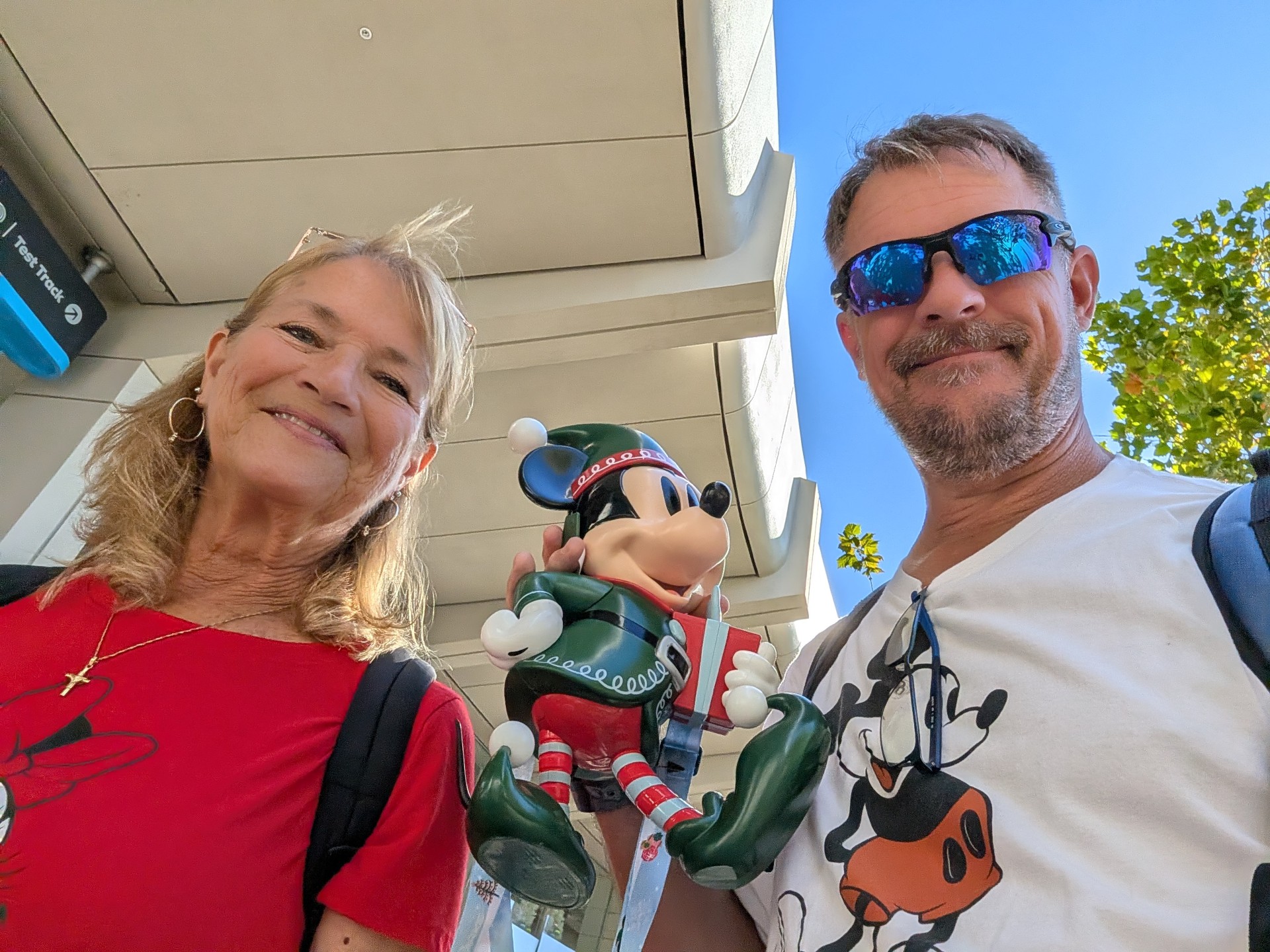 Grandma Terry and Rodney showing off the Mickey Mouse popcorn
